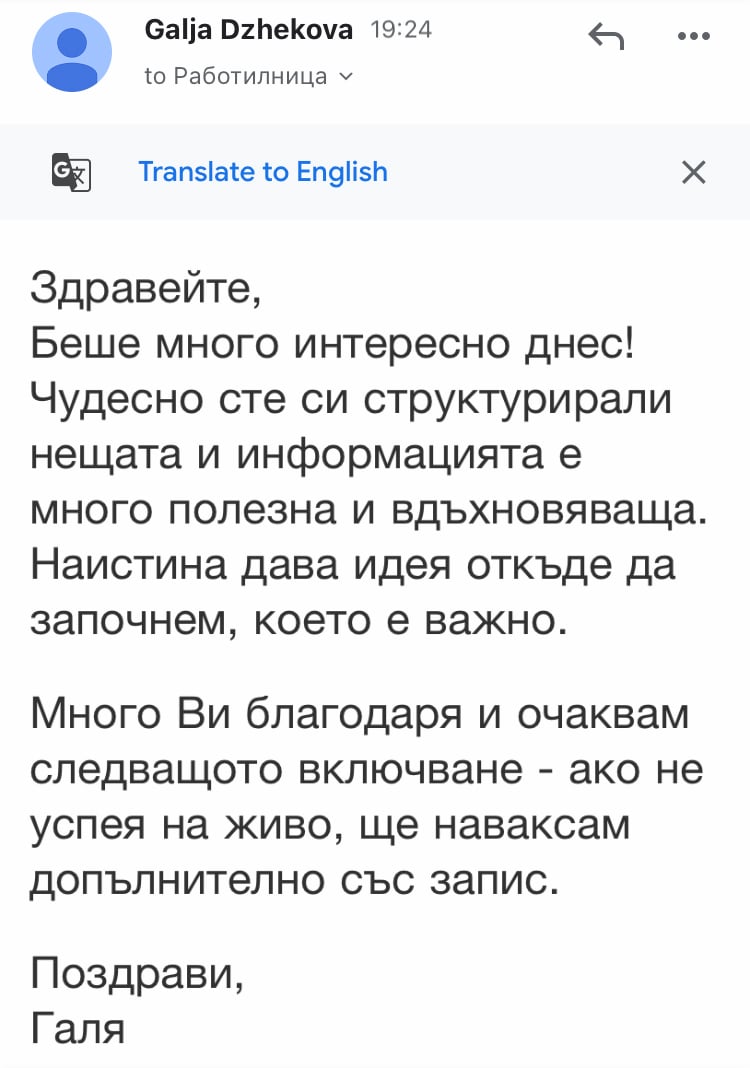 А ето и какво казват участниците в РАБОТИЛНИЦАТА до сега: